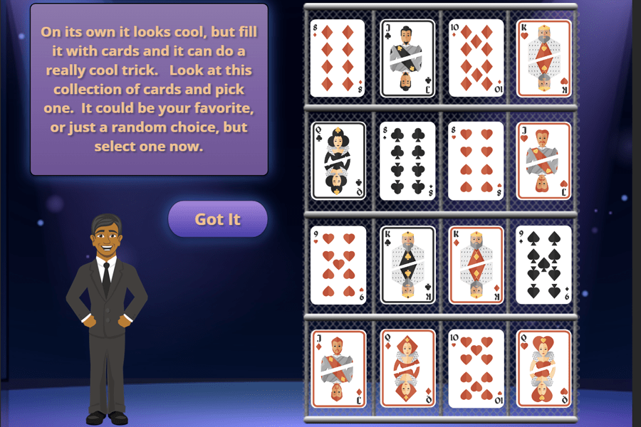 Process: This project began as a pencil sketch for the “Ring of Fire” effect. I wanted to get the locations of the magician, ring, and text to fit not only a screen but to also mimic how this effect may look on stage. When I began to put the visuals together in photoshop, I chose to go with a purple/blue and yellow/orange color scheme. Not only do these colors pop against one another but the darker blues and purples mimic the feel of a theater with the lights down to add to the immersive nature of the effects. I put together a narrative storyboard in Google Docs to make sure every slide was correctly laid out in a way that would make the effect work. As I was nearing the completion of the effect, I had the idea to add in the other two. I repeated the process of sketching out the general look of the scene and putting together a narrative storyboard.